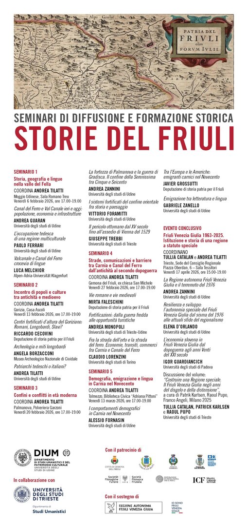• Discussion dal volum: “Costruî une Regjon speciâl. Il Friûl-Vignesie Julie tai agns dal disglaçament e de distension", par cure di Patrik Karlsen, Raoul Pupo, Franco Angeli, Milan 2025